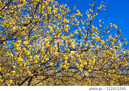 ロウバイの花と青空・松田町寄ロウバイまつり(神奈川県)