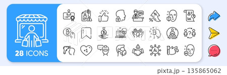Blood donation, Foreman and Dont handshake line icons. Interest rate, AI generate, Inflation icons. Pack of Report, Uv protection, Bitcoin think icon. Vector