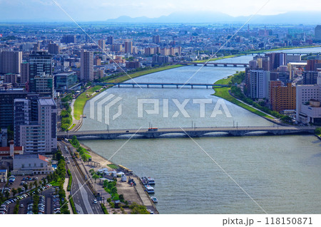 メディアシップ展望台より信濃川上流方面の街並みを望む