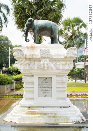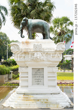 インドネシア国立博物館前の象像モニュメント/タイ国王から寄贈された歴史的記念碑
