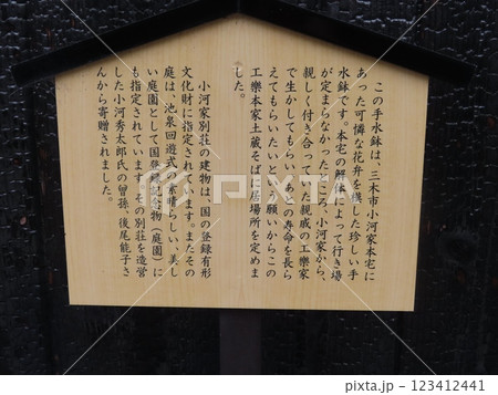 三木市小河家本宅にあった可憐な花弁を模した手水鉢、小川家から寄贈された、工楽松右衛門旧宅の脇にある