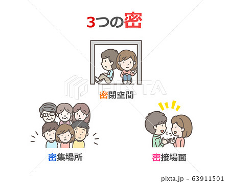 3つの密を避けましょうのイラスト
