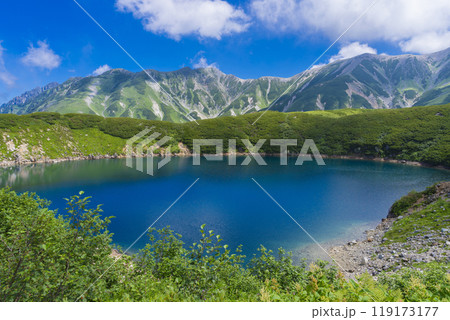 秋の立山室堂平みくりが池と立山連峰 立山黒部アルペンルート