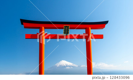 富士宮浅間大社本宮大鳥居から望む富士山 静岡県富士宮市