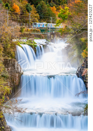 富士急行 田原の滝を通過する電車