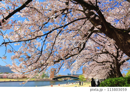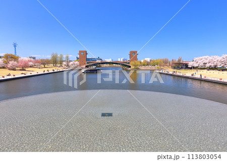 【富山県】快晴の富岩運河環水公園と満開の桜