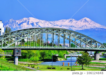 北海道 旭川市のシンボル 旭橋と大雪山連峰