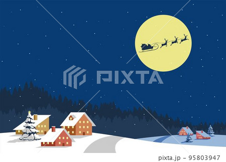 木から顔を覗かせるサンタクロースのイラスト背景素材