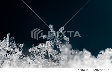 natural snowflakes on snow. the picture is made at a temperature of-10 C