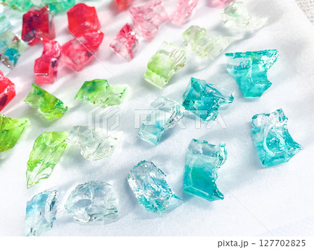 アナログ水彩いろいろな色の手でちぎった琥珀糖