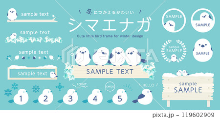 シマエナガデザインセット ( ベクター 冬 フレーム あしらい 装飾 かわいい 小鳥 )