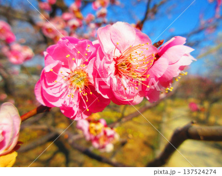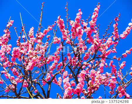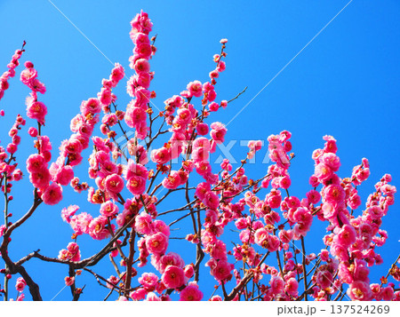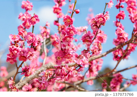 早春の紅梅と青空の美しい風景