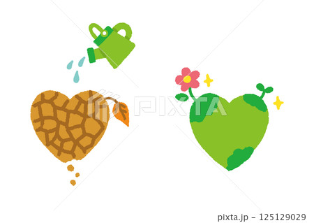 乾いた心に水をあげて回復する様子を表したイラスト ハート 手書き