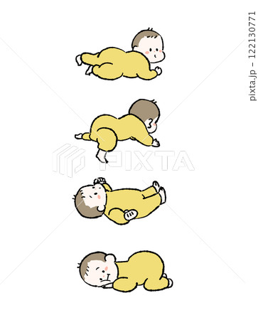 寝返り、ハイハイ、お座りするかわいい赤ちゃん