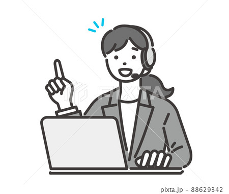 コールセンターで働く女性オペレーターのベクターイラスト素材/サービス/説明/ビジネス