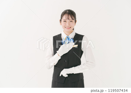 白い手袋をした事務服の女性