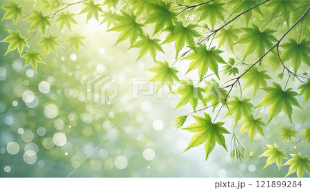 新緑のモミジが輝く爽やかな自然の背景イラスト