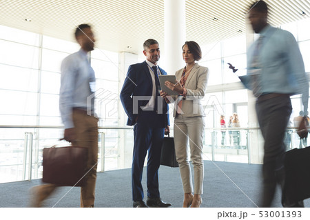 Business executives discussing over digital tablet