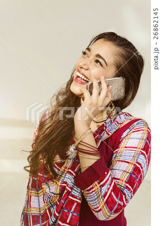 Girl Indian Telecommunication Talking Mobile Concept