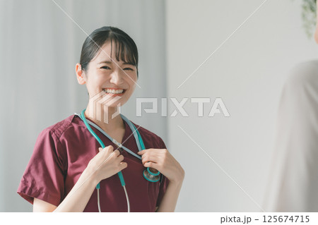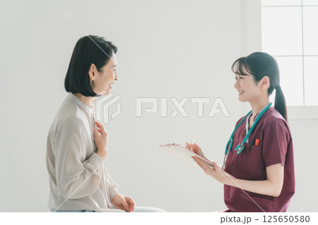 診察をする内科の女性医療スタッフ