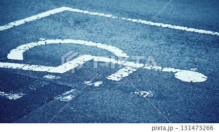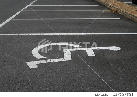 身体障害者用マークのある駐車場風景