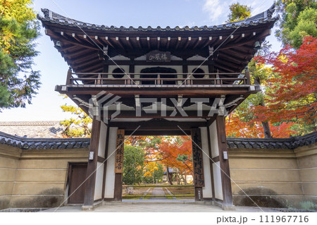 大徳寺塔頭寺院 竜翔寺 楼門から紅葉した庭園が見える