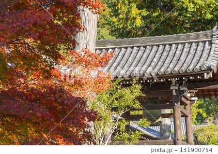 大徳寺塔頭寺院 竜翔寺 楼門から紅葉した庭園が見える