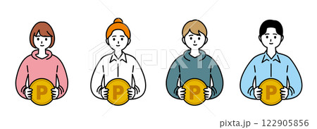 ポイントを獲得し喜んでいる人のイラストセット