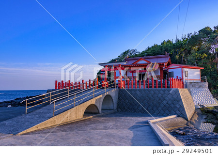 海に突き出ている鹿児島県南九州市にある釜蓋神社、射楯兵主神社