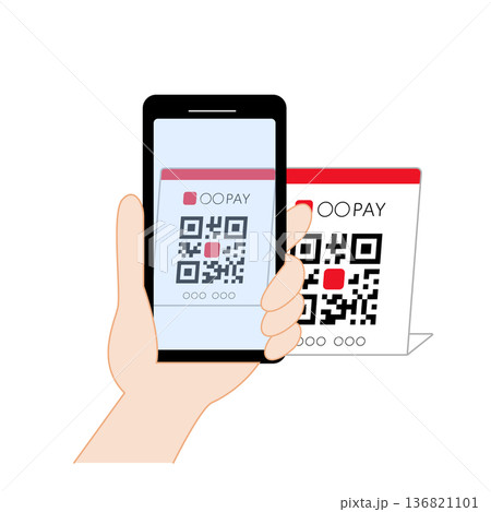 主線なしのフラットなカラーで描いたQRコード決済を行う手のイラスト