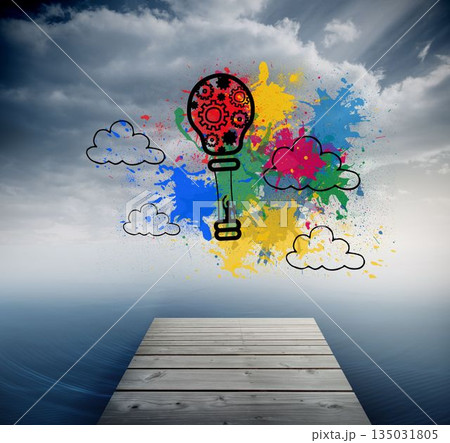 Colourful idea graphic on gloomy countryside