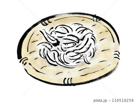 しらすを箸で掴んで持ち上げている和風手描きイラスト