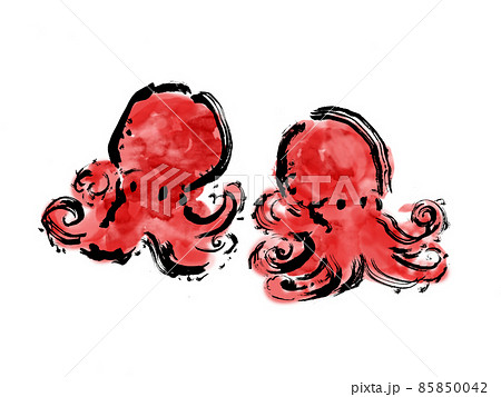 飯ダコ 生 和風手描き筆描きイラスト素材