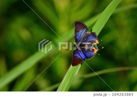 青紫色の翅が美しい、希少な珍しいチョウ、キマダラルリツバメ
