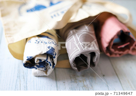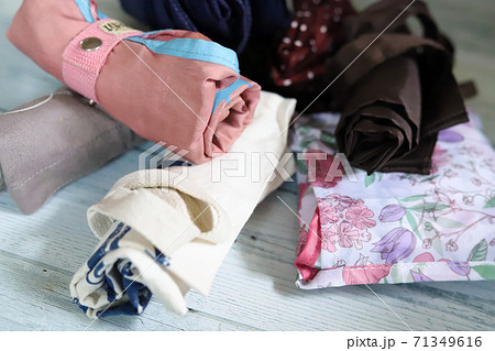 ぐるぐる丸めた買い物用マイバッグ エコバッグ