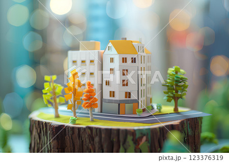 切り株の上の可愛い街並み-1(3D)