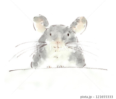 冷蔵庫の上からこちらを覗いているチンチラの顔の水彩画イラスト