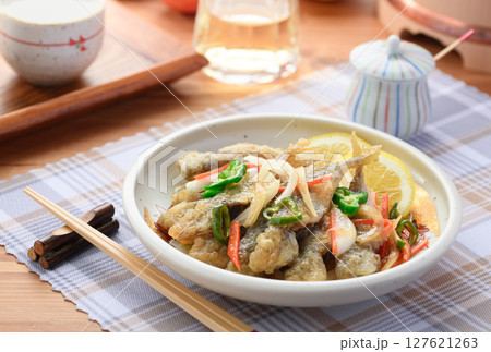真鯵 小アジ 豆アジ 南蛮寺けのたれに鯵の唐揚げを漬ける