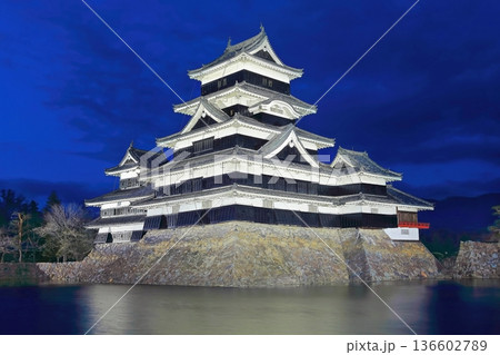【長野県】ライトアップされた松本城の夜景(現存天守、国宝)