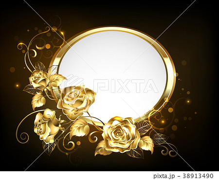 Oval banner with gold roses