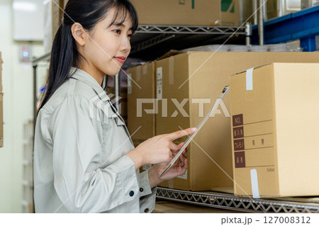 倉庫で働く若い女性