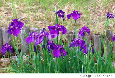 初夏の公園 綺麗に咲く花菖蒲の風景