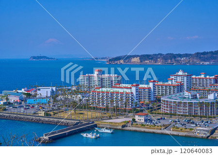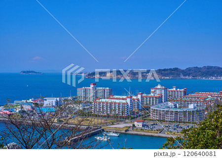 神奈川県逗子市の大崎公園から西側方面(江の島,富士山,逗子市小坪など)の眺望