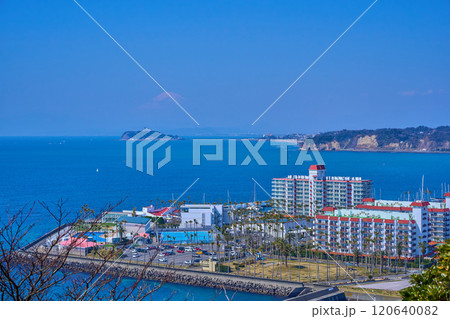 大崎公園より逗子マリーナ、江の島、富士山方面を望む