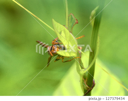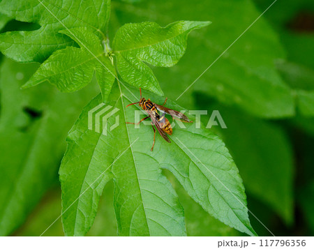 葉に止まるスズメバチ科ヤマトアシナガバチ