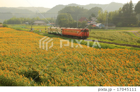 ひまわり畑を行く烏山線
