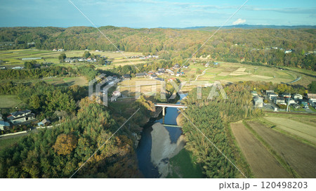 烏山線 小塙駅近くの荒川 11月の午後 ドローン撮影