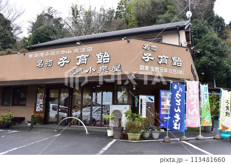 静岡県 小夜の中山夜泣き石看板とドライブイン小泉屋