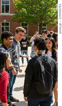 学内で談笑する男女