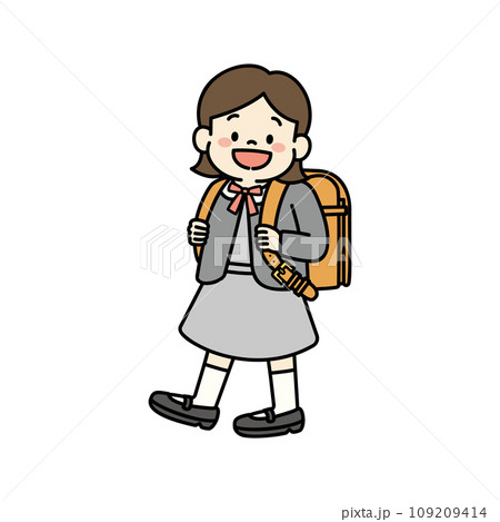 小学校に入学するランドセルを背負った新一年生のイラスト 女の子